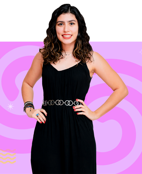 La diseñadora Claudia Seller, egresada del Técnico Especialista en Diseño y Comercialización de Moda. En el 2023 Claudia participó en la pasarela “Moda por una Causa” en El Salvador, representando a Nicaragua como estudiante de la Escuela Creativa
