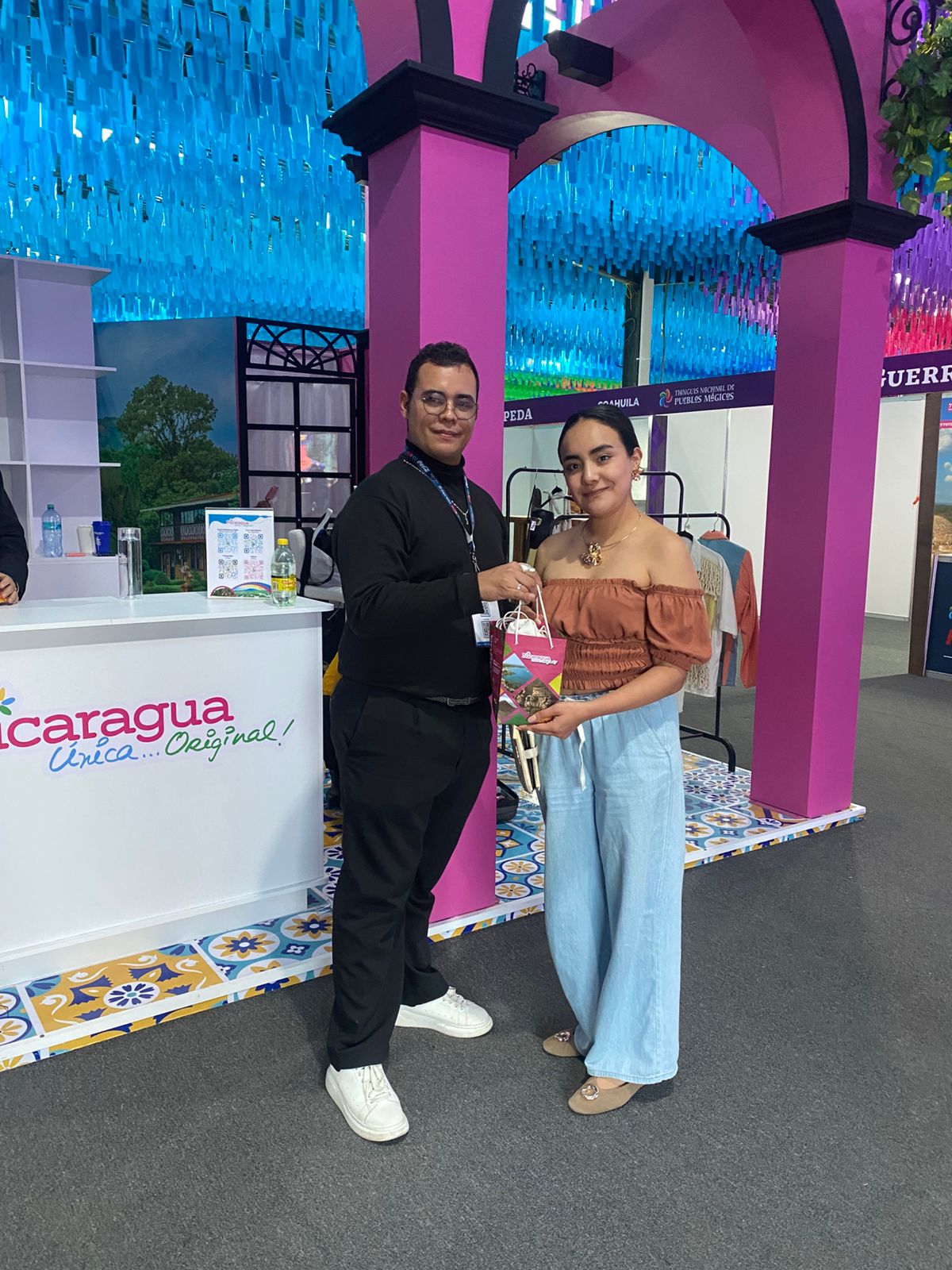 Pero noviembre trajo aún más oportunidades para Jhostin. El diseñador formó parte de la delegación nicaragüense que viajó a Hidalgo, México, para asistir al Tianguis Nacional de Pueblos Mágicos 2025, un importante encuentro turístico y comercial que reunía tradiciones, creatividad y emprendimiento de toda América Latina. Nicaragua participaba por primera vez en este prestigioso evento, y Jhostin tuvo el honor de exhibir sus creaciones en el stand nacional.
